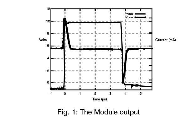 The Module consists of a pulse voltage source capacitively coupled to the metallic object to be protected. The pulse voltage source generates a voltage pulse with: